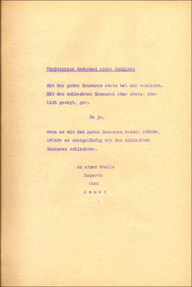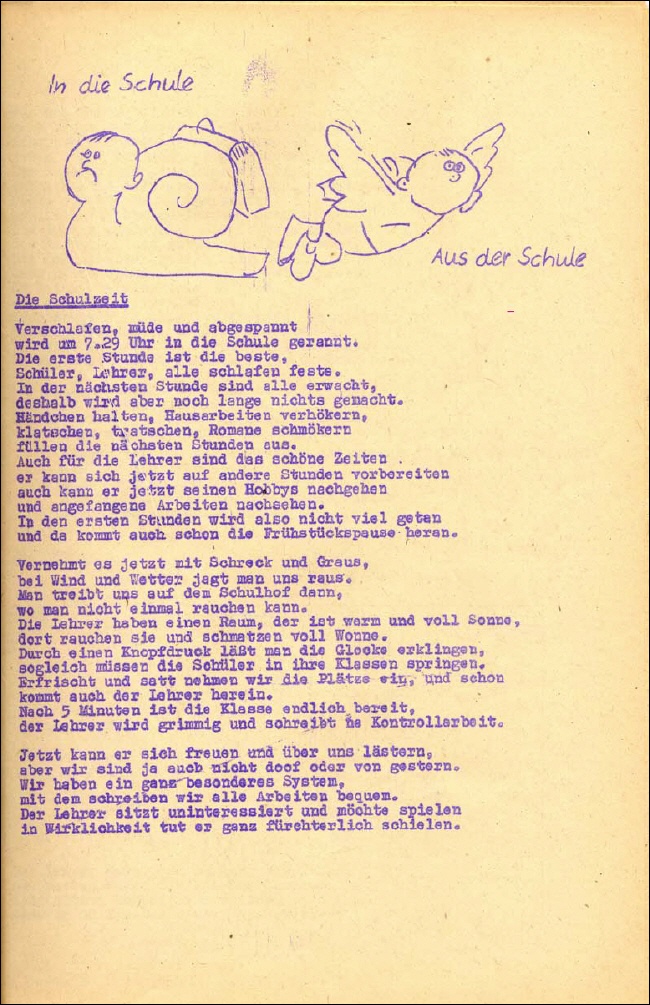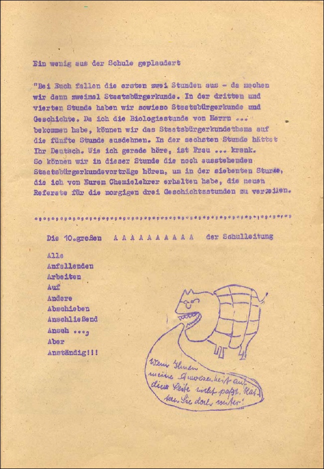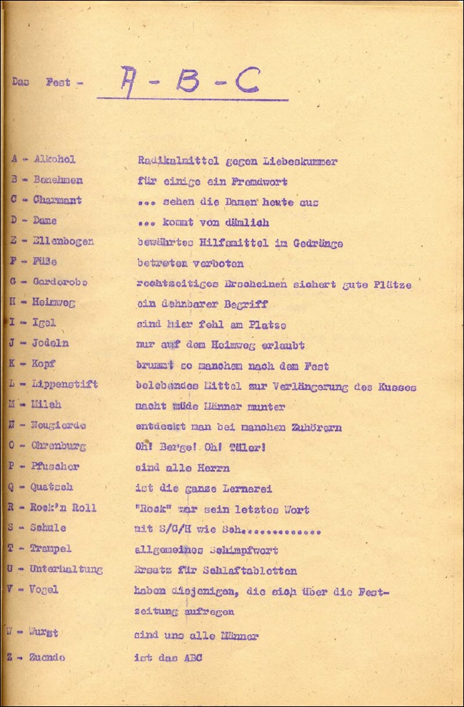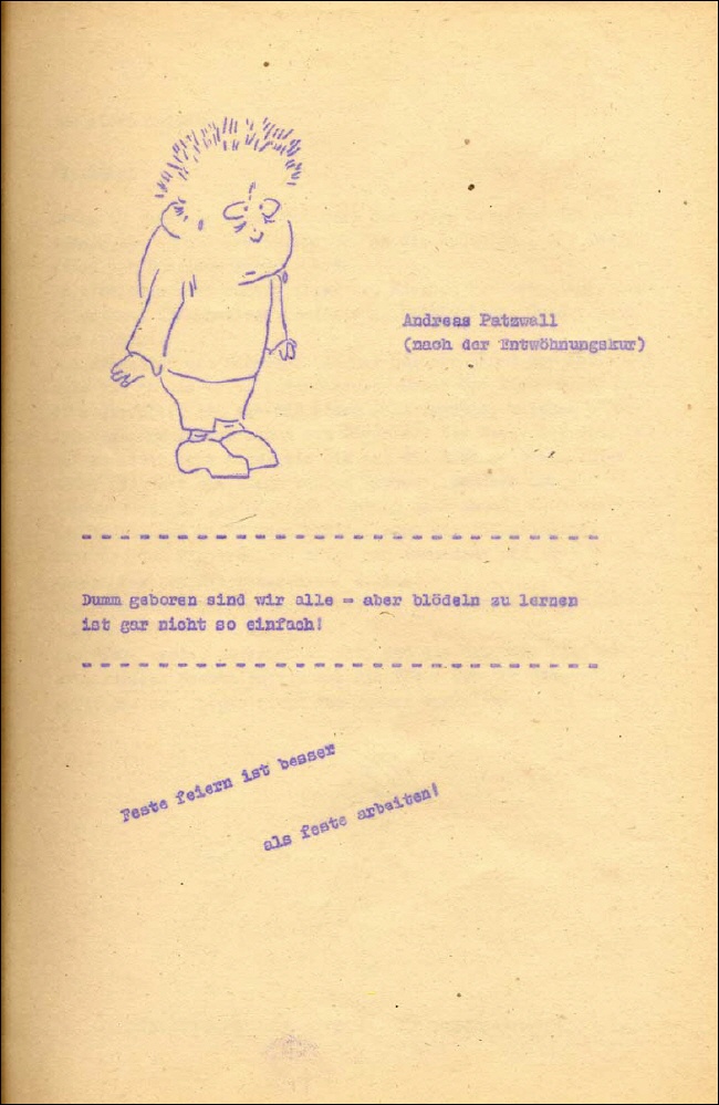 Hier also nun die Abschlußzeitung unserer Klasse aus dem Jahre 1975. Die Abschlußfeier fand im "Klub der Volkssolidarität" statt. Klickt einfach auf die Bilder. Vergrößern geht auch. Ihr müßt Euch also nicht die Augen verderben! |